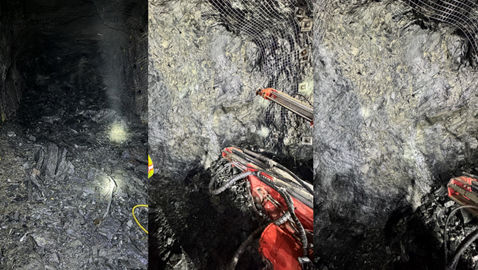 - Die Entwicklungsarbeiten unter Tage haben insgesamt etwa 1.375 Meter erreicht, einschließlich der 1.196 Meter, die seit Jahresbeginn fertiggestellt wurden, wobei sich die Zufahrtsrampe 10 vertikale Meter unterhalb der 120-Meter-Sohle erstreckt.